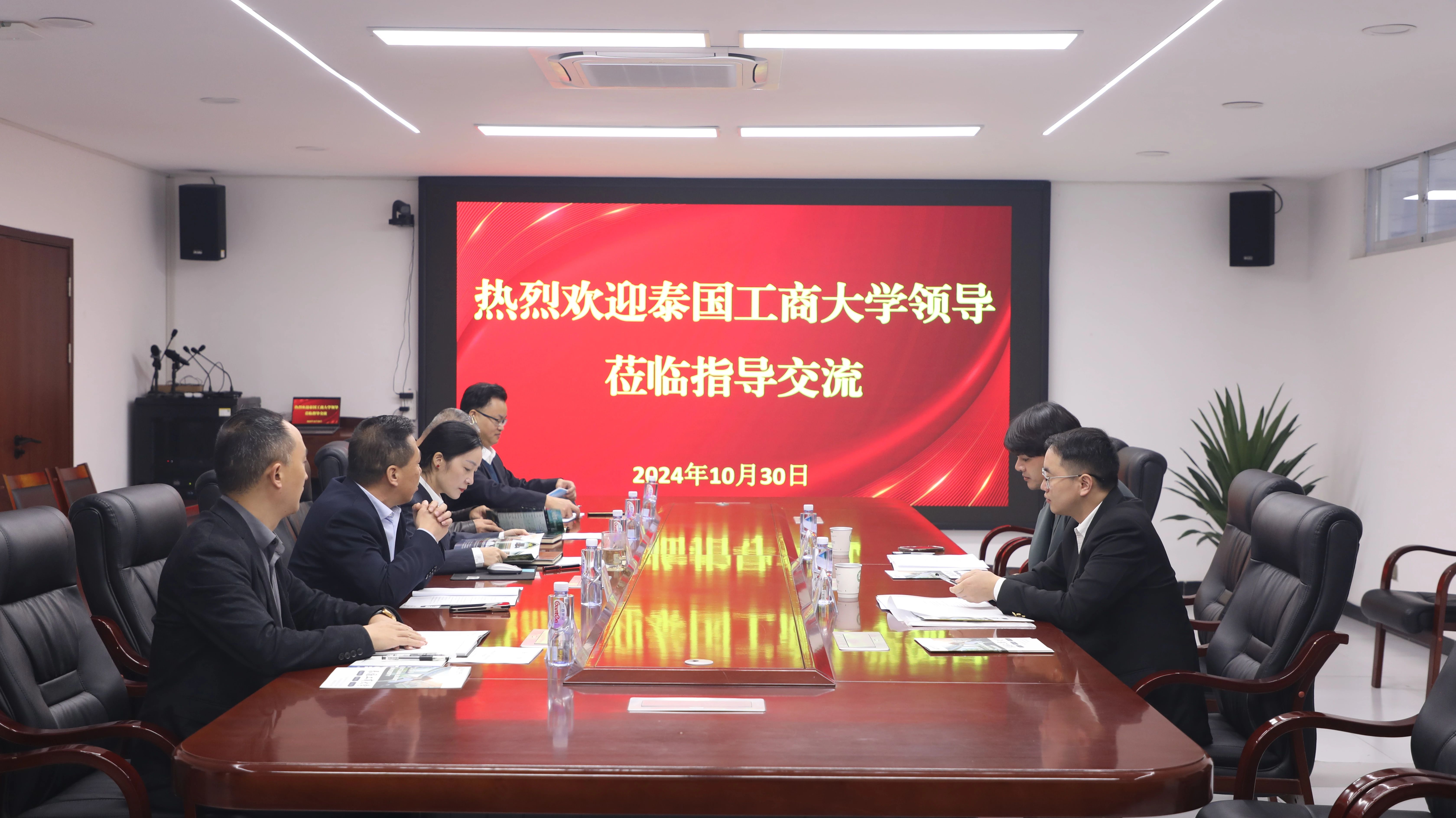 泰国工商大学国际学院执行院长SITTICHOK JALERNKIJ和泰国工商大学国际学院副院长郑智予出席座谈。广元中核职业技术学院副校长高源、副校长赵忠宪、校长助理兼合作交流处处长李强、核工程与技术系主任陈春华和合作交流处副处长郑阳出席座谈。