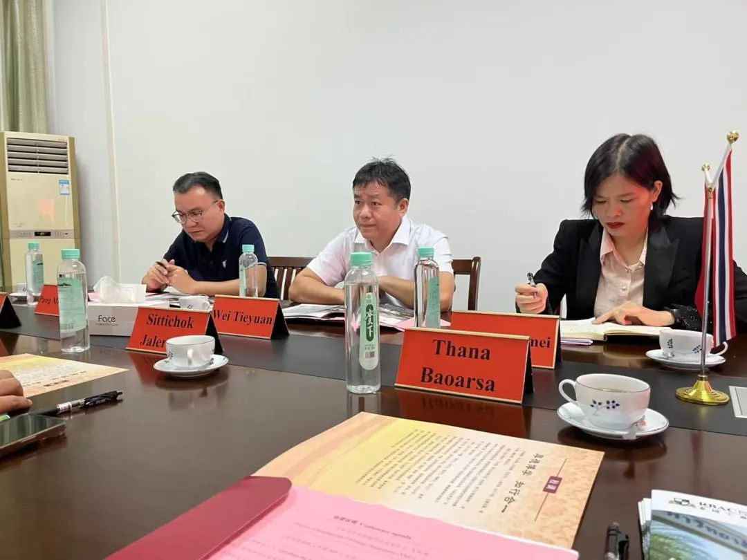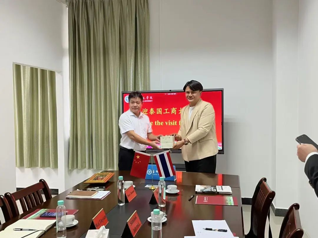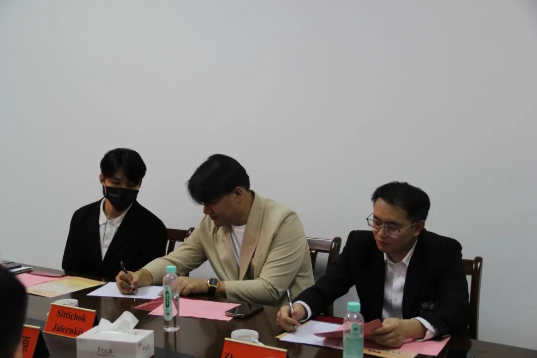 会谈上,双方围绕中泰两国学生3+1互换交流、学生短期交流游学、教师硕士0.5+1.5及博士学历提升项目、科研合作、等内容展开详谈并达成共识。随后两校签署合作备忘录、互赠纪念品,象征着友谊与合作的长久延续并在共同合影留念中为此次交流画上了圆满的句号。