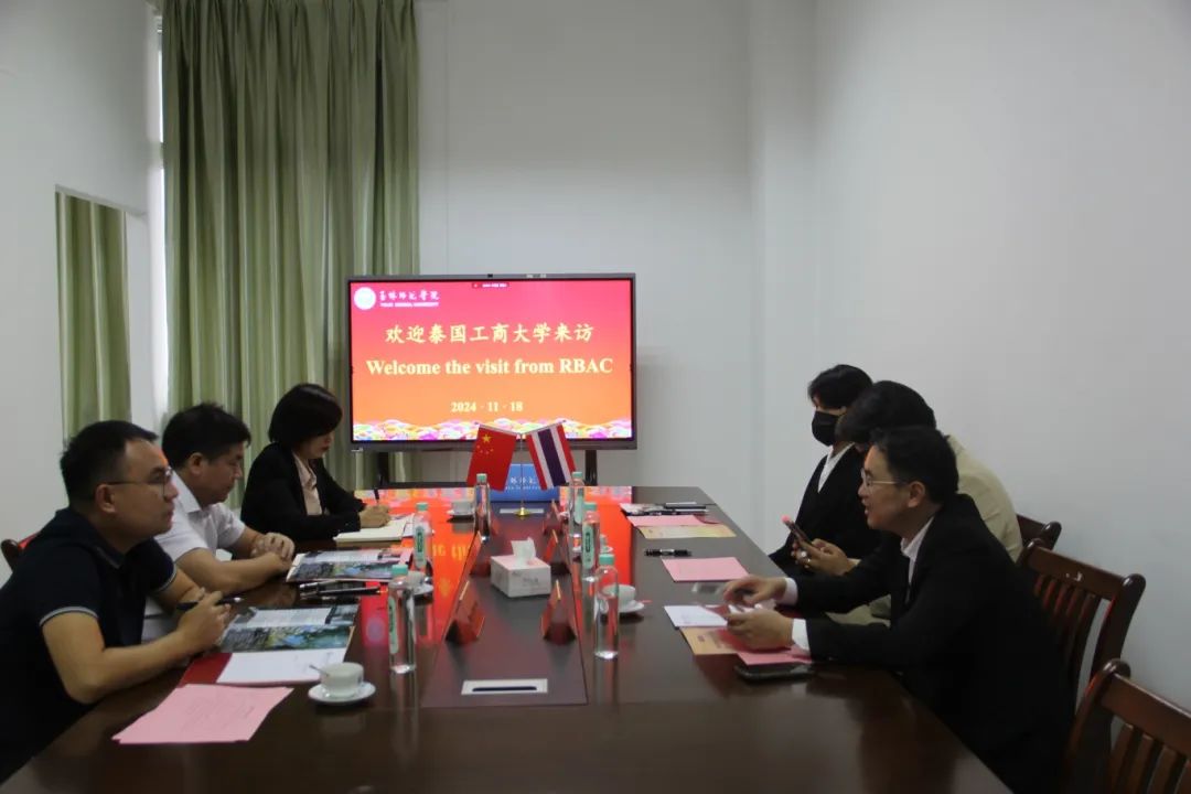 此次会议由玉林师范学院国际交流处处长韦铁源主持,玉林师范学院国际交流处外事科科长庞明聪及国际交流处工作人员陈春梅出席会议。泰国工商大学国际学院执行院长Dr. Sittichok Jalernkij、国际学院副院长Dr. Zheng Zhiyu 、国际学院工作人员.Mr.Thana Baoarsa 出席会议。