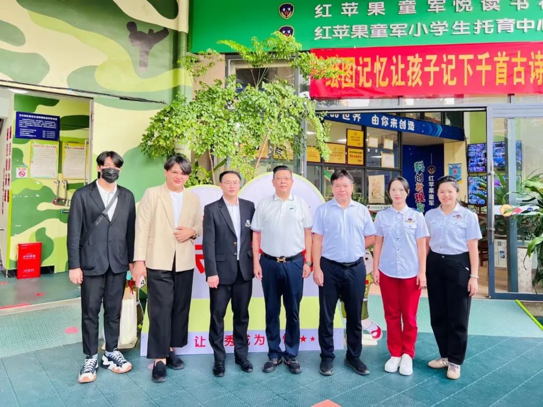 会议结束后,韦铁源处长带领泰国工商大学到访人员参观了玉林师范学院校外实训基地红苹果教育集团,红苹果教育集团作为玉林市目前最大的幼儿教育集团,在吴坷宗董事长的带领下参观了教学园区并向泰国工商大学到访人员介绍了园区的发展及学校办学理念。吴坷宗董事长独特的办学理念,在玉林市得到了社会人士的广泛认可