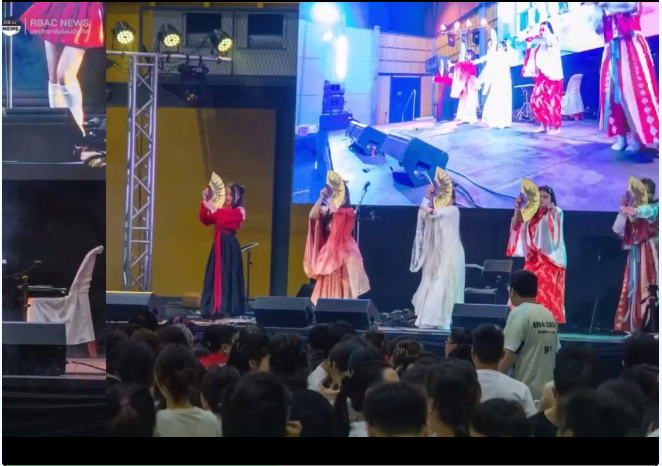 除了这场音乐盛宴的狂欢,我们的舞蹈家们也是百花齐放,好节目不断涌现,如中国留学生的《古往今来共贺新年》、《传奇》、《happy new year》、《金蛇狂“舞”闹新春》、《华夏春韵,歌舞升平》、《明月几时有》,泰国国学生商务汉语专业大一大二学生的《Cover Dance》,尤其是《华夏春韵,歌舞升平》,更是让现场的每一个人都感受到了浓浓的节日气氛。更有中国留学生表演的小品《歌曲接龙》、《奖励大小红包》现场舞台如梦如幻、热闹非凡,这是一场由大学生们主导的视听盛宴。