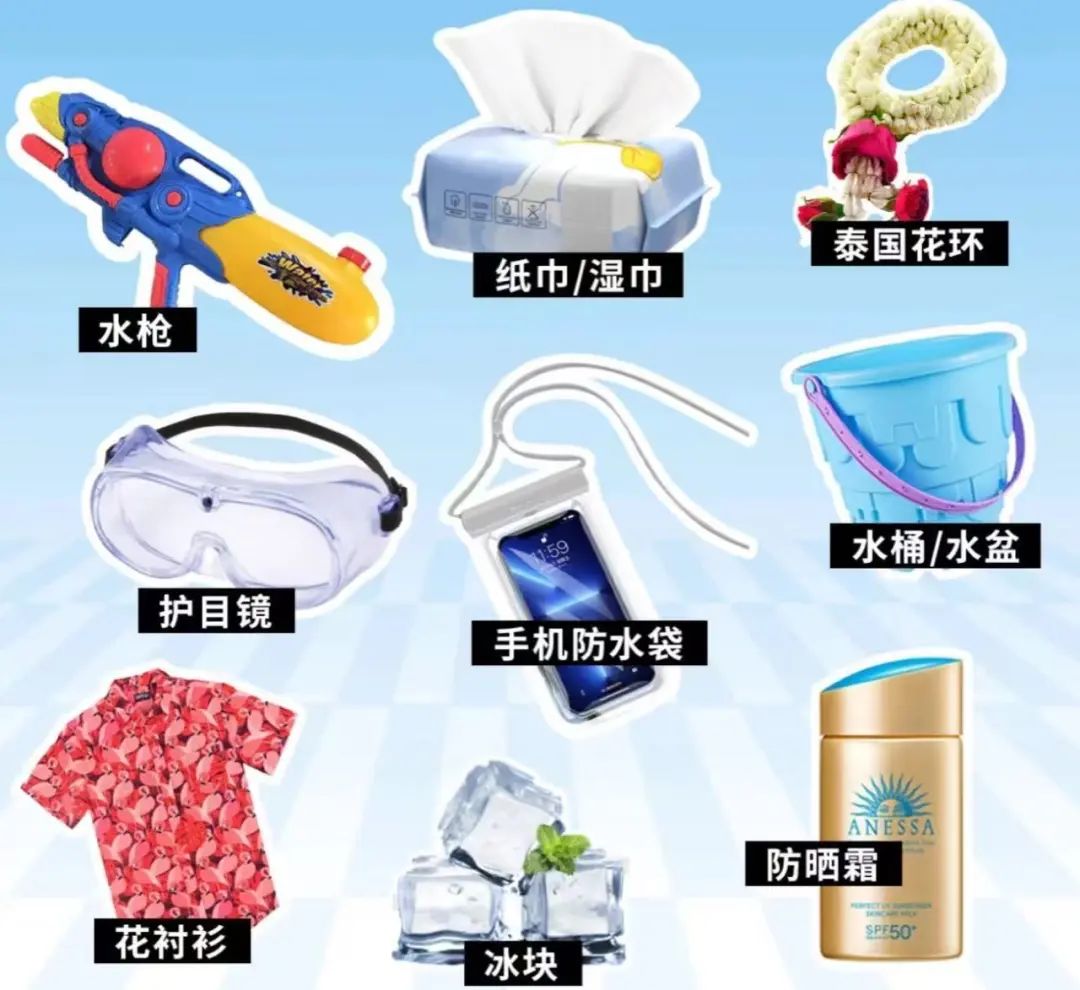 必备物品:防水手机袋、大容量水枪(合规款)、防晒霜(SPF100+)、轻便雨衣。