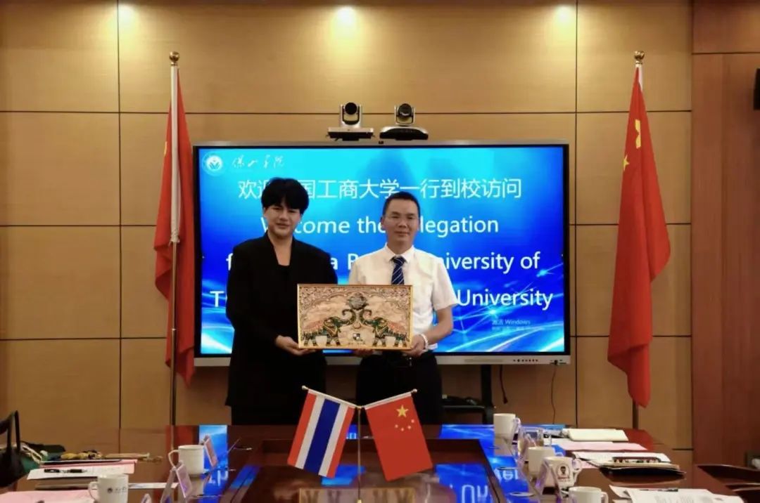 座谈会尾声,两校互赠纪念品并合影留念,象征着中泰文化的交融。这一环节不仅是礼节,更是对未来合作的期许。