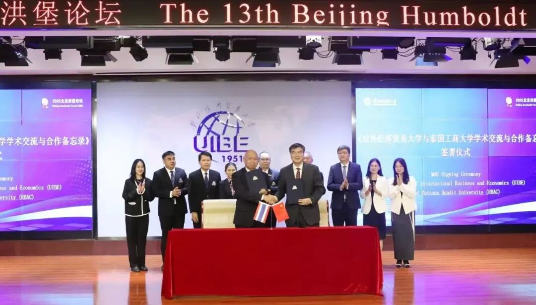 2025年9月20日,泰国工商大学受邀出席第十三届北京洪堡论坛,并与对外经济贸易大学签署《学术交流与合作备忘录》,以教育合作之桥深化中泰高校联动,为全球南方合作注入新动能。