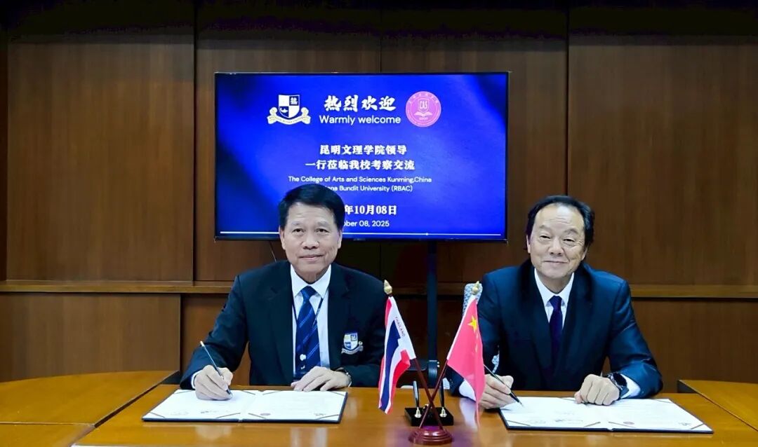 2025年10月8日,昆明文理学院代表团赴泰国工商大学开展深度交流并成功签署《战略合作谅解备忘录》(MOU)。两校将以此次签约为起点,在人才培养、科研创新、文化交流等领域展开深度合作,为区域教育国际化注入新动能,也为广大学子打开了一扇通往东南亚的“成长之门”。
