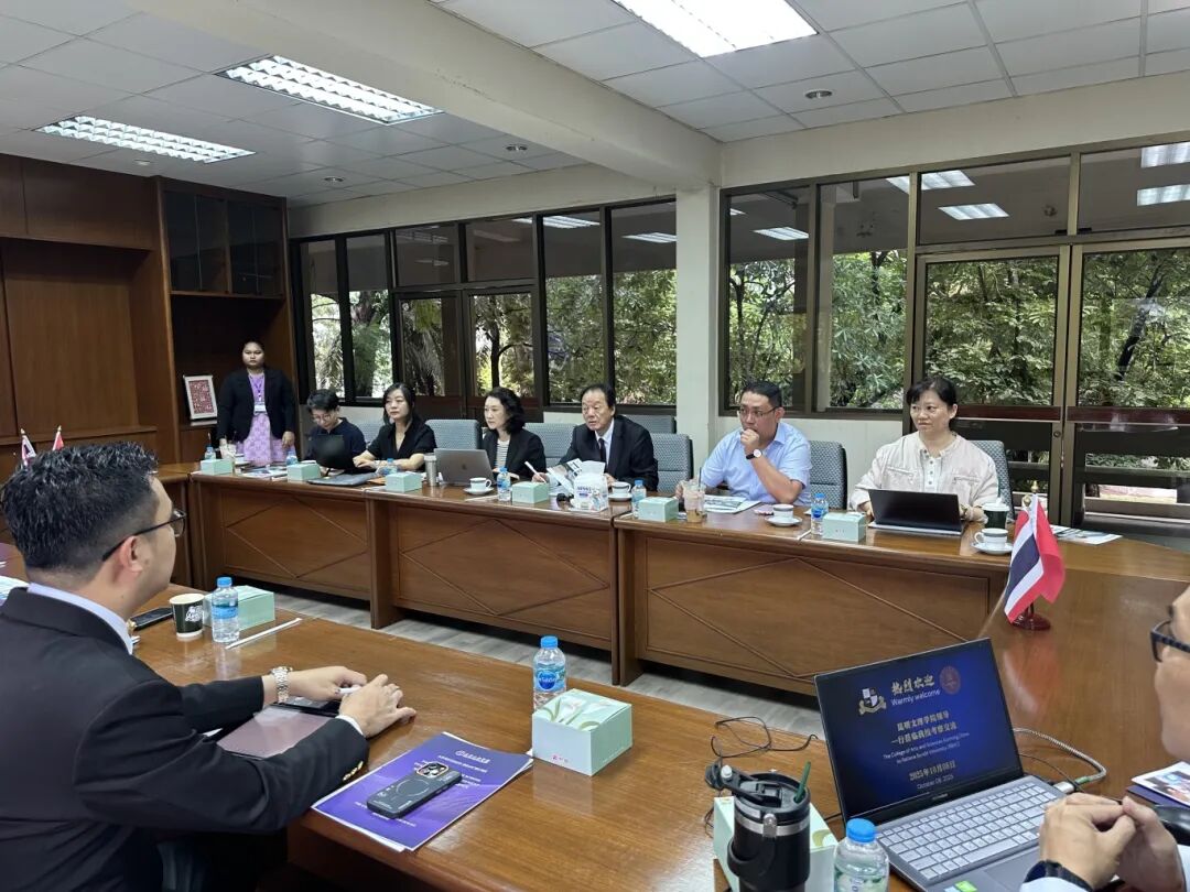 昆明文理学院副校长杨涛、教务处处长吴雁汶、国际处处长助理朱玥霖、数智经济与管理学院副院长徐丽姣、人文学院汉语国际教育教研室主任王媛璘 、外国语学院泰语教师张源赴泰国工商大学交流座谈。