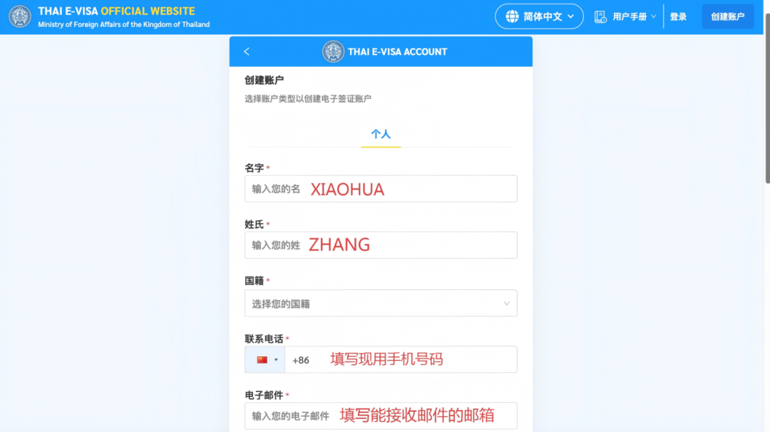 访问泰国电子签证官方系统:https://www.thaievisa.go.th,点击创建账户