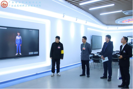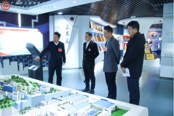 会后,在广西理工职业技术学校领导陪同下郑智予副院长一行,先后参观了 “印象・理工” 校史馆、数字化管理中心及新能源实训中心。从学校发展历程的系统呈现,到数字化教学管理的高效运行,再到新能源实训设施的专业配置,郑智予副院长对广西理工职业技术学校的办学成果、实训条件与人才培养质量给予高度评价。