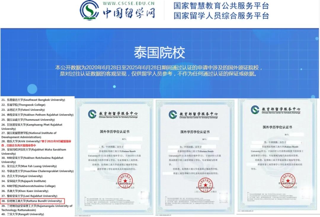 依据 2007、2010 年中泰两国教育部签署的学历互认协定,泰国工商大学文凭受中国教育部正式认可,毕业后可在教育部留学服务中心完成学历学位认证,考公、考研、就业均与国内统招学历同等待遇。