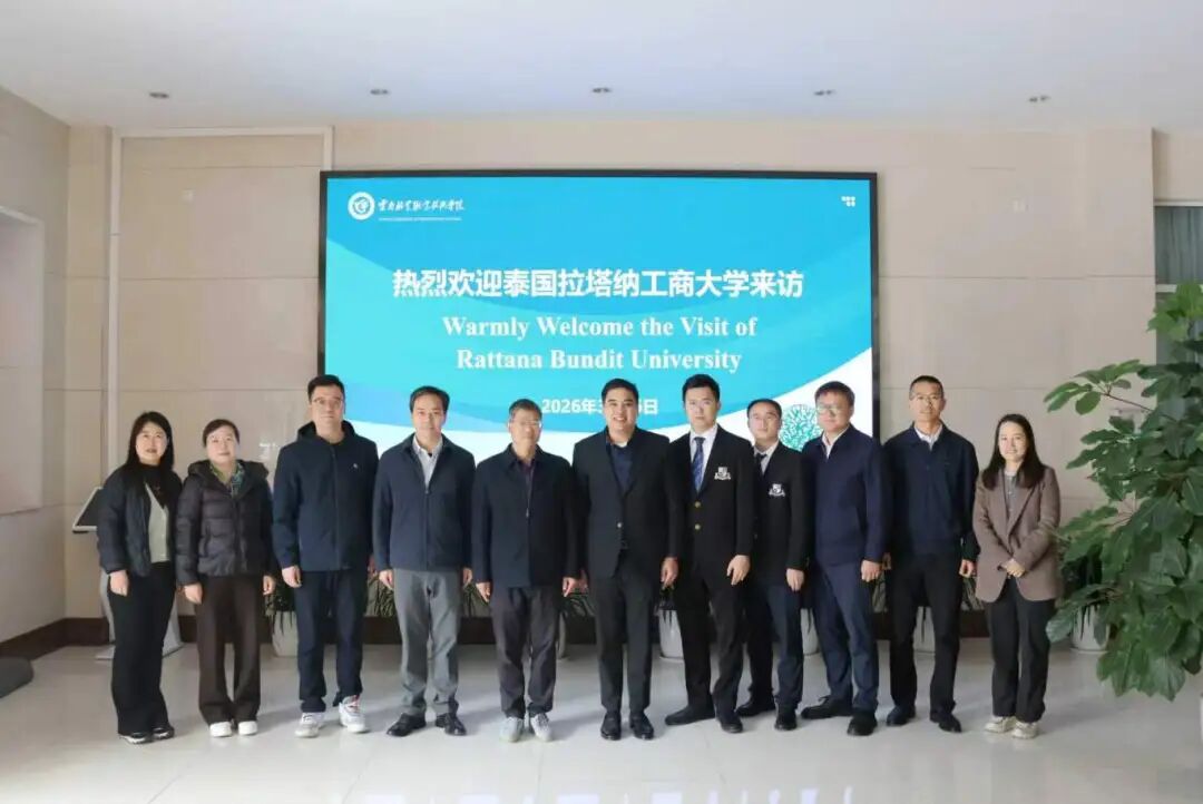 2026 年 3 月 16 日,春和景明之际,泰国工商大学校董代理校长 Dr. Pawrin Rattanapian、校长助理 Dr. Yingchapoeng Boonyoung 、国际学院副院长 Dr. Zhiyu Zheng(郑智予)、泰国工商大学优秀博士生陈卫及起鹏一行赴中国云南林业职业技术学院开展交流座谈。此次访问以 “深化一带一路教育合作” 为核心,旨在搭建两校人才培养、科研创新与文化交融的坚实桥梁。