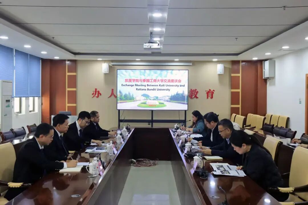 2026 年 4 月 1 日下午,泰国工商大学副校长 Dr. MONTRI CHAIPUN、校长助理 Dr. YINGCHAROEN BOONYOUNG、国际学院副院长郑智予、国际学院办公室主任 Mr. Songwut Chanarhan 一行,应邀赴中国凯里学院开展校际交流访问,旨在深化 “一带一路” 框架下的教育合作,共商人才联合培养与文化交流大计。