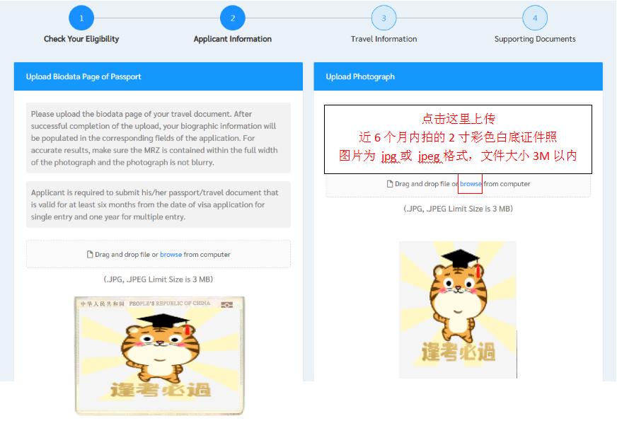 注意:上传所有材料格式只能是JPG/JPEG或PDF格式,文件大小不超过3M。请关注邮箱、签证网站、电话的情况,如果材料不完整或不合格,领事馆可能拒签或要求补充材料,补齐所有材料后预计8周左右签证会下来。