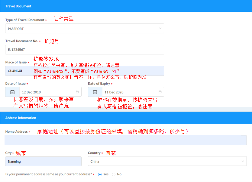 6.打开签证网站,登录账号后根据要求,依次填写签证信息