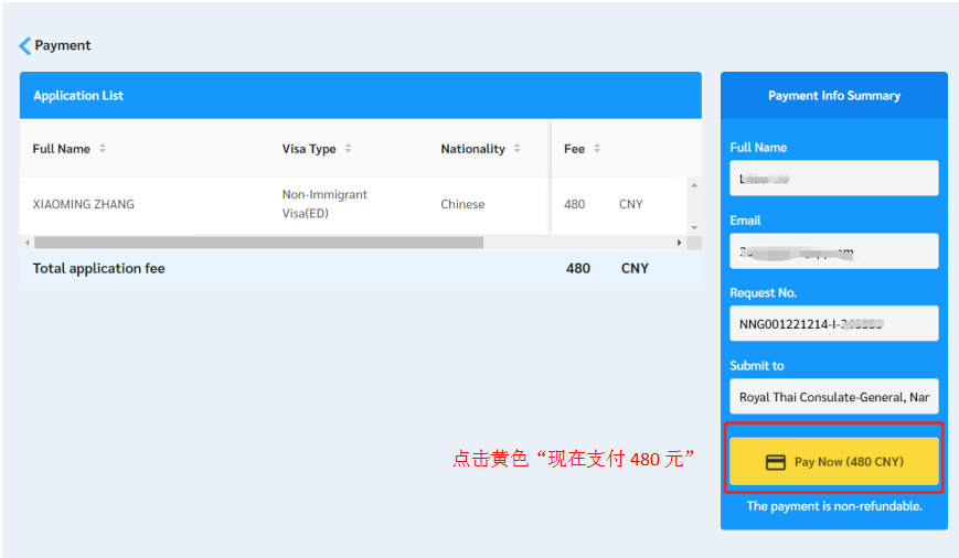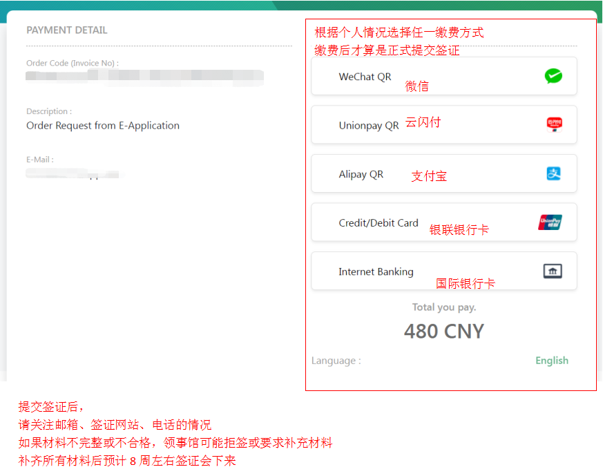 4. 提交签证,缴纳签证费480元/人
