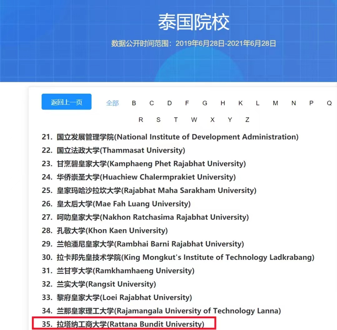 备注:由于新院校加入,泰国工商大学在中国留学网上排位更新为第39位(排位为首字母顺序)。